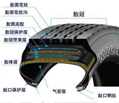 輪胎的類型有:國(guó)際標(biāo)準(zhǔn)的輪胎代號(hào),以毫米為單位表示斷面寬度和扁平比的百分?jǐn)?shù)。后面加上:輪胎類型代號(hào),輪輞直徑(英寸),負(fù)荷指數(shù)(許用承載質(zhì)量代號(hào)),許用車速代號(hào)。
